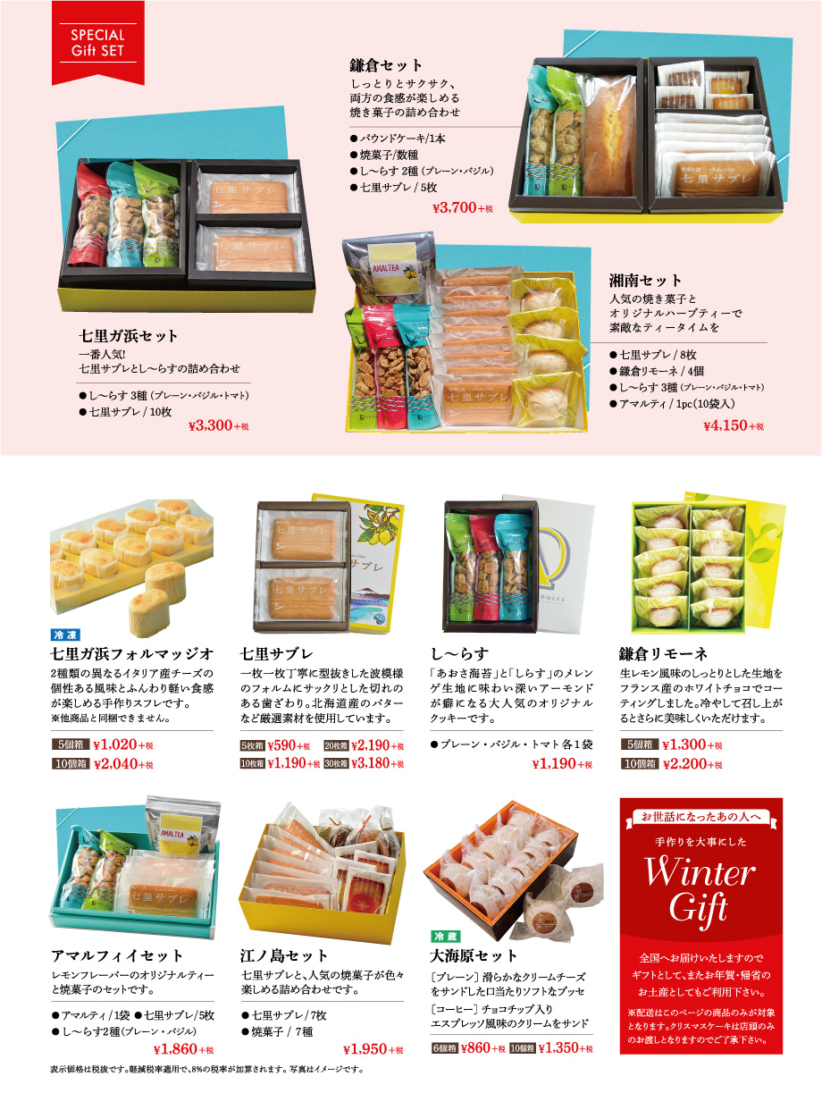 人気の七里サブレとし〜らすをセットにしました。ご進物等にもいかがでしょうか。